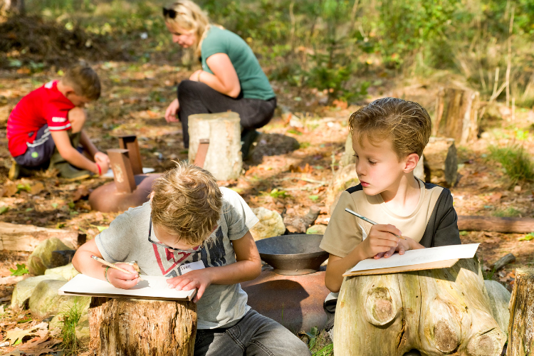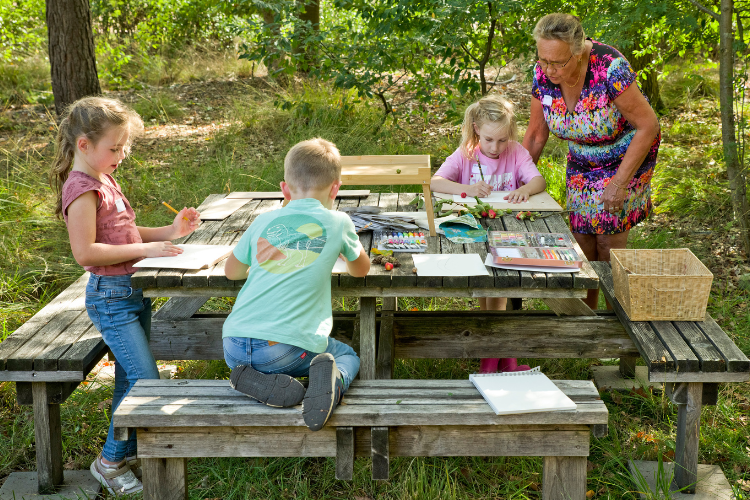 Op vrijdag 19 september organiseerde Bosplezier een bijzondere schildermiddag in het bos. Onder leiding van kunstenares Ingrid Groeneveld van Galerie Groot’n Jans verzamelden kinderen materialen uit de natuur als inspiratiebron. In de warme nazomerzon gingen ze, na een korte instructie, zelfstandig aan de slag met hun eigen bosschilderij. Tijdens de afsluitende “expositie” deelden de deelnemers hoe gezellig en verbindend schilderen in de natuur kan zijn. Het leverde een middag vol plezier, creativiteit en unieke schilderijen op. Wie verder aan de slag wil, kan ook workshops volgen bij Ingrid Groeneveld in Galerie Groot’n Jans. Foto’s gemaakt door Simon Dirks Media